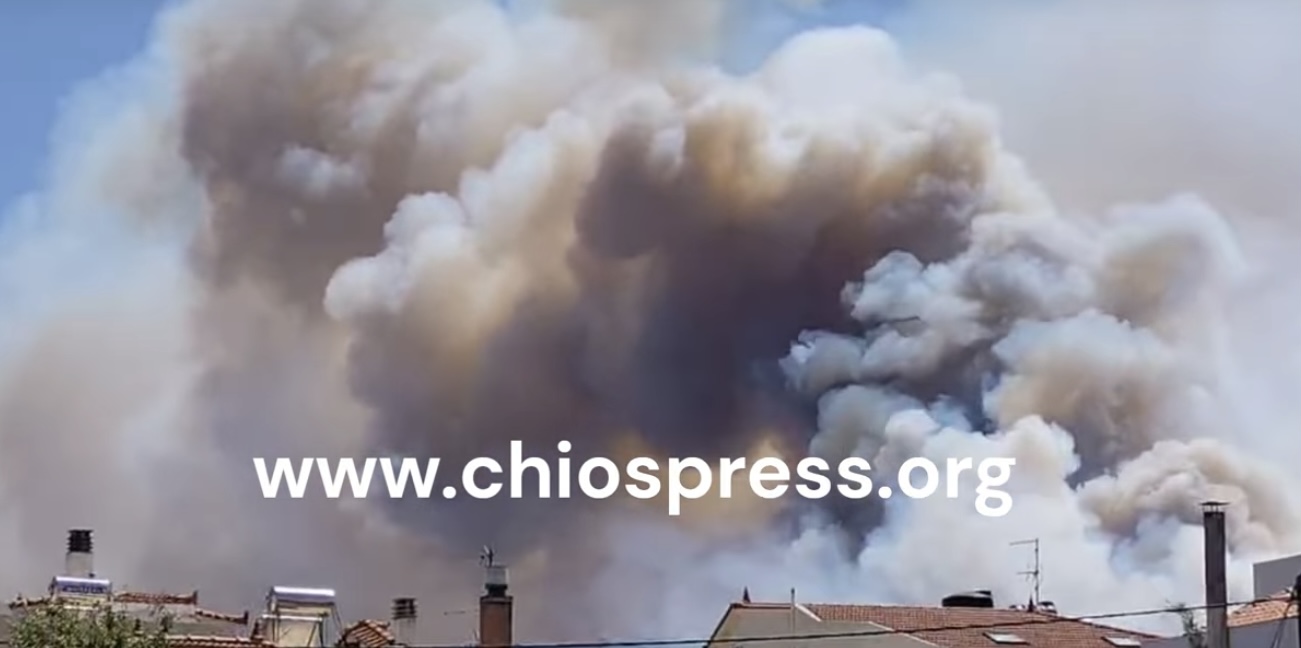 «Αν βρίσκεστε στην περιοχή Δαφνώνας, Βερβεράτο, Χαλκειό, Βασιλεώνοικο, Γρού, Ζυφιάς απομακρυνθείτε προς την πόλη της Χίου»αναφέρει το μήνυμα που εστάλη στους πολίτες.