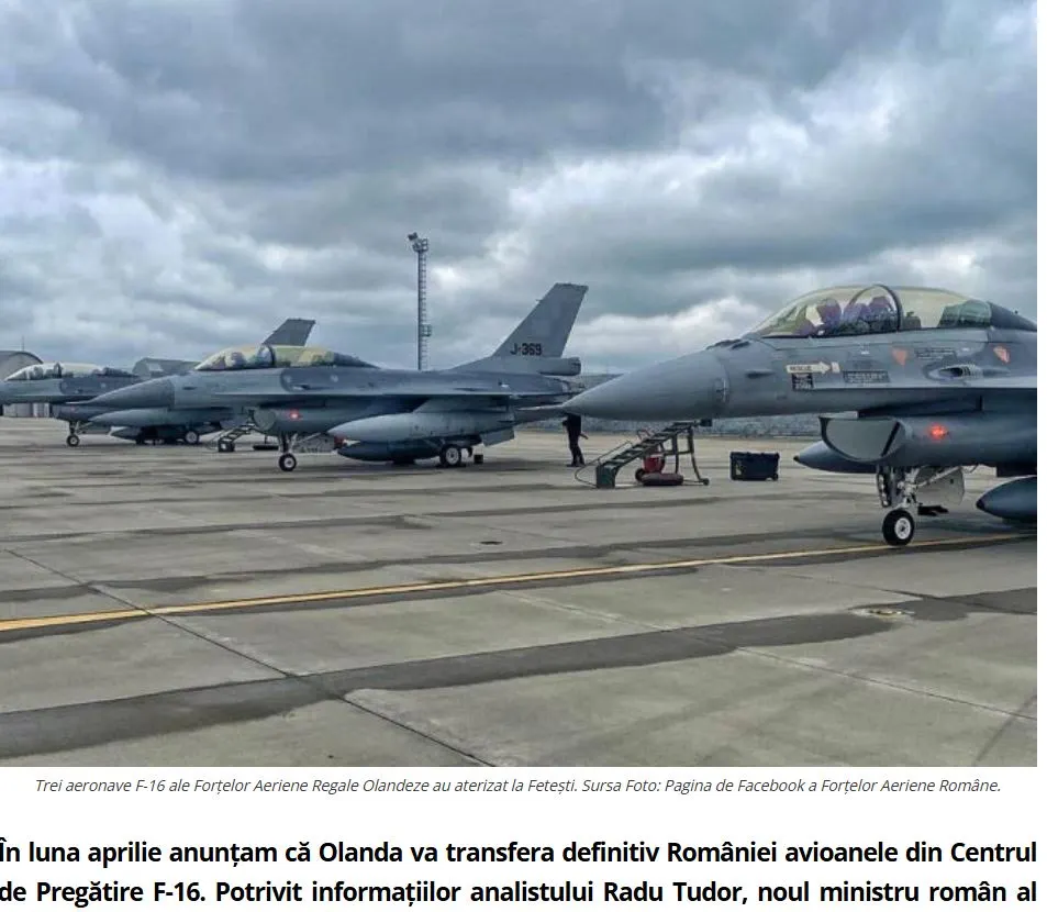 Αυτά τα 18 αεροσκάφη F-16, που έχουν ήδη αναπτυχθεί στην 86η Αεροπορική Βάση Μπόρτσεα στο Feteşti, θα παραμείνουν μόνιμα στην Πολεμική Αεροπορία της Ρουμανίας. Θα εξυπηρετούν το κέντρο εκπαίδευσης πιλότων του ΝΑΤΟ, όπου εκπαιδεύονται και Ουκρανοί αεροπόροι.