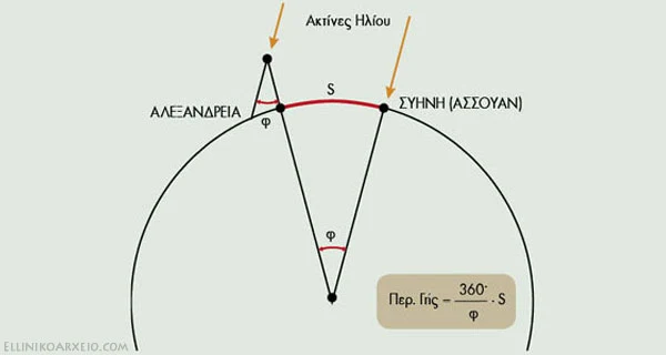 Ο υπολογισμός της περιμέτρου της Γής από τον Ερατοσθένη.
