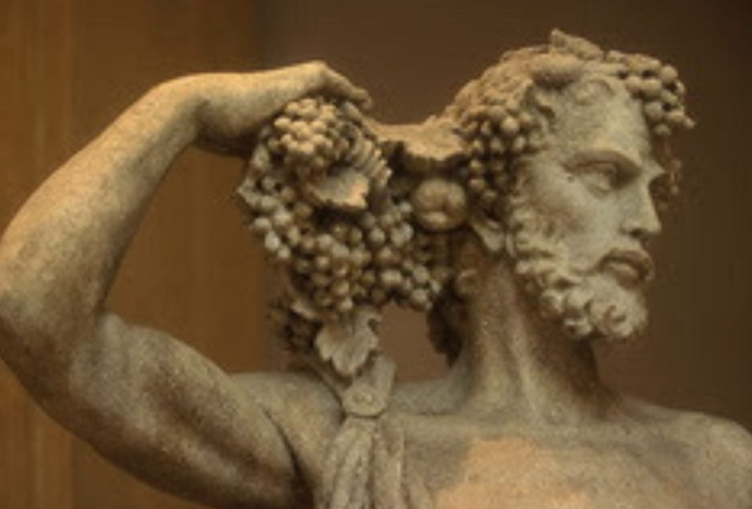 Στην ελληνική μυθολογία, εκτός από τους δώδεκα θεούς του Ολύμπου, που θεωρούνταν οι σημαντικότεροι, υπήρχαν και άλλοι θεοί που δεν κατοικούσαν στο θεϊκό αυτό βουνό. Ένας απ’ αυτούς ήταν και ο θεός Διόνυσος. Ήταν ο πιο πρόσχαρος από τους θεούς και από τους πιο αγαπητούς στους ανθρώπους. Όπως ο Προμηθέας τους έδωσε τη φωτιά ή ο Ασκληπιός τις πρώτες βάσεις της ιατρικής, έτσι και ο Διόνυσος τους πρόσφερε το αμπέλι και το κρασί.