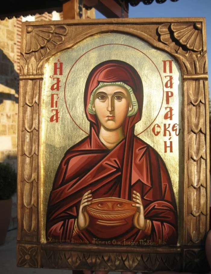 Aλλά στη χορεία των Αγίων της Εκκλησίας είναι πολλοί όχι μόνο όσιοι ασκητές, αλλά και καλλίνικοι μάρτυρες. Αυτοί είναι και λέγονται οσιομάρτυρες. Και τέτοια είναι η αγία οσιομάρτυς Παρασκευή, της όποιας σήμερα η Εκκλησία εορτάζει και τιμά την ιερή μνήμη. Η αγία Παρασκευή ήταν από τα περίχωρα της Ρώμης, στα χρόνια του αυτοκράτορα Αντωνίνου, δηλαδή στα 138 έως 161. Ο πατέρας της λεγότανε Αγάθων και η μητέρα της Πολιτεία, ήσαν δε και οι δύο ευσεβείς χριστιανοί. Αλλά δεν είχαν παιδιά, γι’ αυτό και προσεύχονταν και παρακαλούσαν το Θεό να τους δώσει ένα παιδί. Ο Θεός άκουσε την προσευχή των ευσεβών γονέων και γέννησαν ένα κορίτσι. Ήμερα Παρασκευή γεννήθηκε το παιδί και Παρασκευή το είπαν.