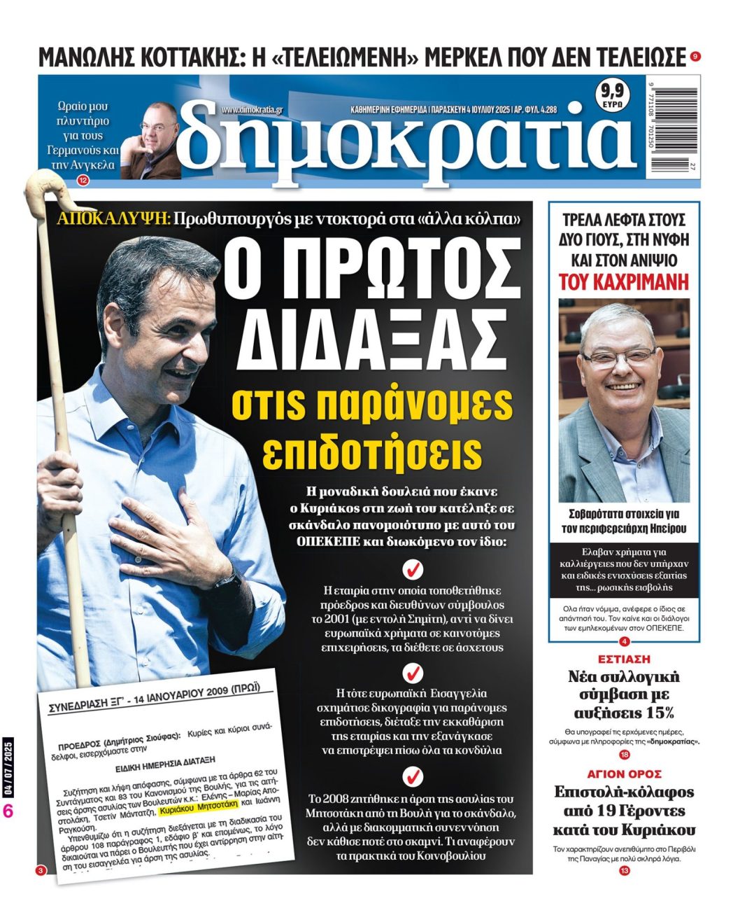 MEDIAΤο πρωτοσέλιδο της εφημερίδας Δημοκρατία σήμερα: Ο πρώτος διδάξας στις παράνομες επιδοτήσεις4/07/2025 - 7:40πμΔΙΑΒΑΣΤΕ ΕΠΙΣΗΣ Τo Σάββατο 29/11 με την Εστία: Κλασσικά παραμύθιαΤο Σάββατο 29/11 με την «δημοκρατία»: Ο πόλεμος του πετρελαίουΤα πρωτοσέλιδα των εφημερίδων σήμερα ΠαρασκευηΤο Σάββατο 29/11 με την Εspresso: Κλασσικά μυθιστορήματαTην Παρασκευή 28/11 με την «δημοκρατία»: Η Ιστορία της ΔραχμήςΤα πρωτοσέλιδα των εφημερίδων σήμερα ΠέμπτηΤα πρωτοσέλιδα των εφημερίδων σήμερα ΤετάρτηΤα πρωτοσέλιδα των εφημερίδων σήμερα Τρίτη Αποκαλυπτική και σήμερα η εφημερίδα Δημοκρατία.ΕΦΗΜΕΡΙΔΑ ΔΗΜΟΚΡΑΤΙΑ ΑΦΗΣΤΕ ΜΙΑ ΑΠΑΝΤΗΣΗ Ακύρωση απάντησης Σχόλιο:εισάγετε το σχόλιό σας! Όνομα:*παρακαλώ εισάγετε το όνομά σας εδώ Email:*έχετε εισάγει εσφαλμένη διεύθυνση ηλεκτρονικού ταχυδρομείου!παρακαλώ εισάγετε εδώ την ηλεκτρονική σας διεύθυνση αποθηκεύστε το όνομα, το ηλεκτρονικό ταχυδρομείο και τον ιστότοπό μου σε αυτό το πρόγραμμα περιήγησης για την επόμενη φορά που θα σχολιάσω. ΔΗΜΟΦΙΛΗ Το τελευταίο αντίο στον 19χρονο Ραφαηλ: Το φέρετρο έφτασε στην εκκλησία τυλιγμένο στη γαλανόλευκη στους ώμους στρατιωτικών που δεν μπορούσαν να συγκρατήσουν τα δάκρυά...Συγκλονίζει ο πατέρας του 19χρονου στρατιώτη Ραφαήλ που έχασε τη ζωή του στη ΡόδοΑύριο η κηδεία του 19χρονου Ραφαηλ: “Ένα κοπέλι έσβησε πο μια χειροβομβίδα” γράφει συντετριμμένος ο πατέρας τουΗ σπαρακτική μαντινάδα του πατέρα του 19χρονου Ραφαηλ που σκοτώθηκε στη ΡόδοΙστορική η «κατρακύλα» Μητσοτακη χωρίς σημεία ανάκαμψηςΣάλος με την ανάρτηση του Πάνου Καμμενου για τους “τυχερούς” του ΟΠΕΚΕΠΕ που κερδίζουν συνεχως λαχείαΕπιβίωσε από την τρομοκρατική επίθεση της 11ης Σεπτεμβρίου, για να τον σκοτώσουν στο ξύλο τρία καθάρματα…Κάτι τρομακτικό εκτυλίσσεται στην Ταϊλάνδη, αλλά σχεδόν κανείς εκτός της χώρας δεν μιλάει γι’ αυτό