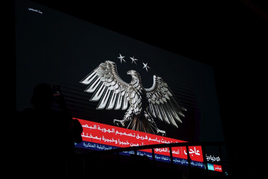 Οι συριακές Αρχές αποκάλυψαν τη «Νέα Οπτική Ταυτότητα της Συριακής Αραβικής Δημοκρατίας», με τον Συριακό Χρυσό Αετό ως νέο έμβλημα της χώρας να προβάλλεται μέσω μιας τεράστιας οθόνης.