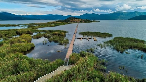 Σίγουρα πρόκειται για μία από τις πιο όμορφες γωνιές της χώρας, με το μικροσκοπικό νησί- αξιοθέατο στη Μικρή Πρέσπα να συγκεντρώνει τα βλέμματα όλων. Ο λόγος για τον Άγιο Αχίλλειο, τη μικροσκοπική κουκκίδα γης μέσα στα νωχελικά νερά της λίμνης, που συνδέεται με τη στεριά με μια ξύλινη, γραφική πεζογέφυρα 650 μέτρων.