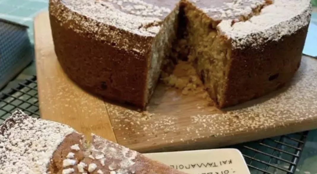 Σε ένα μπολ έχουμε βάλει το αλεύρι μαζί με το γαρίφαλο, την κανέλα, το καρύδι και τη σταφίδα (την οποία έχουμε στεγνώσει ταμποναριστά για να μην σβολιάσει το αλεύρι όταν τη ρίξουμε).