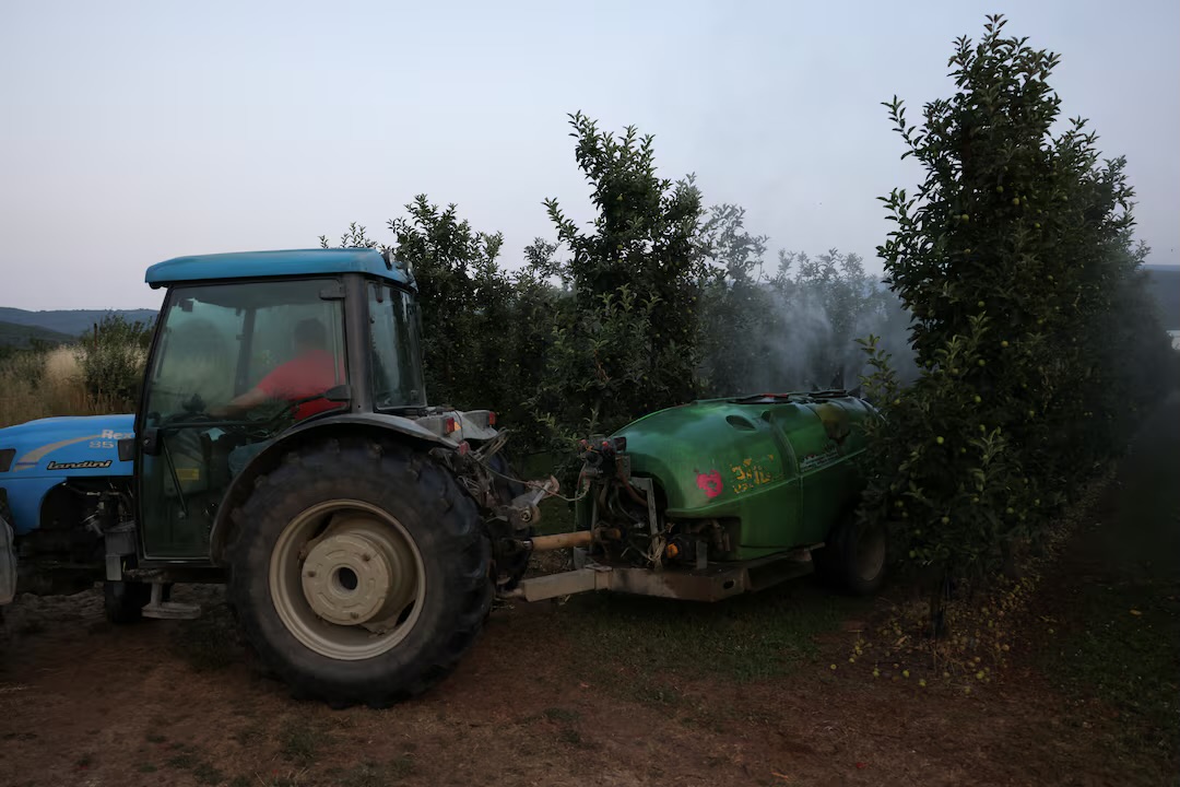 «Για να επιβιώσει ένας αγρότης, πρέπει να γίνει εγκληματίας;» είπε ο Γιώργος Ζέικος, καλλιεργητής μήλων τέταρτης γενιάς, επικεφαλής συνεταιρισμού στο χωριό Αγιά.