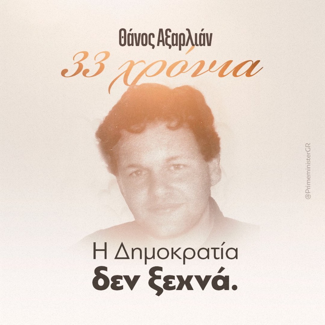 Πέρασαν 33 χρόνια απο την θλιβερή εκείνη ημερα της 14ης Ιουλίου 1992 που η 17Ν έχοντας σαν στόχο τον τότε υπουργό Οικονομικών, Γιάννη Παλαιοκρασσά, δολοφόνησε στο κέντρο των Αθηνών τον 20χρονο τότε Θανο Αξαρλιάν.