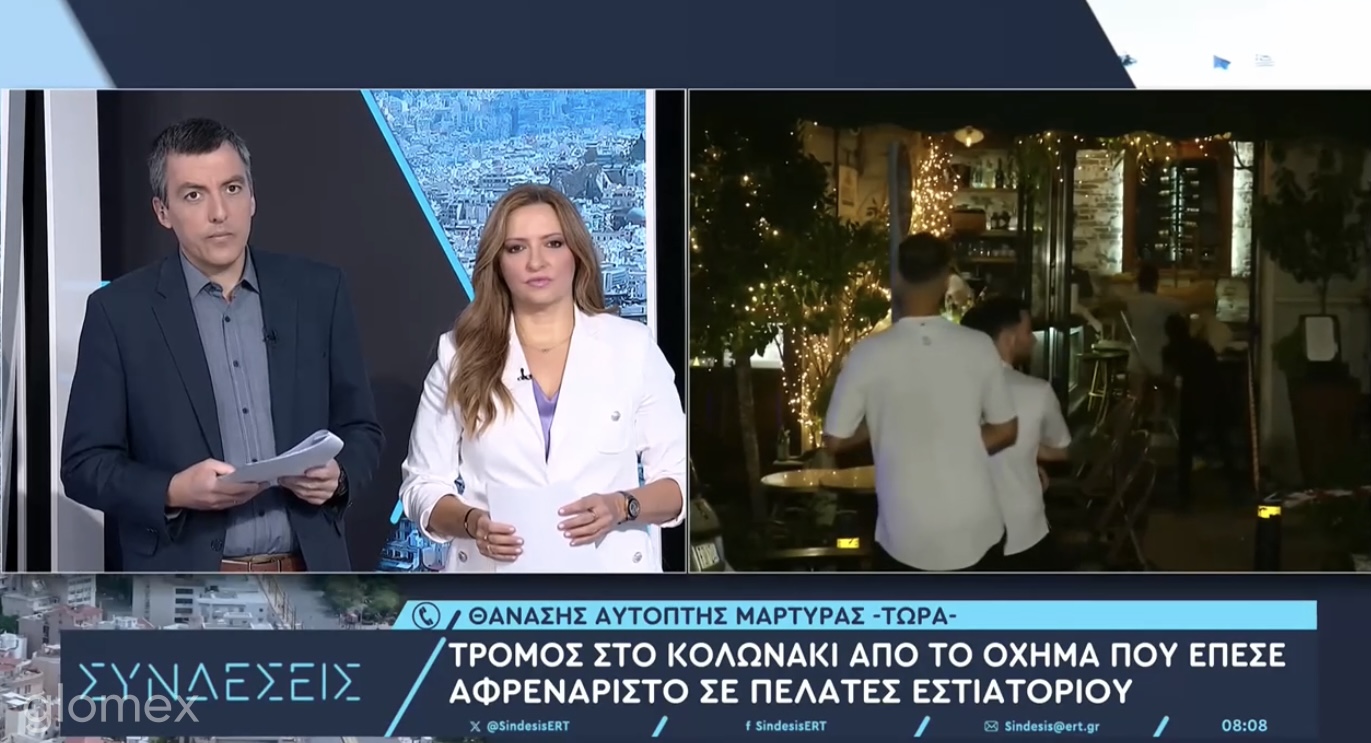 Μέσα σε δευτερόλεπτα έγινε το ατύχημα στο Κολωνάκι το βράδυ του περασμένου Σαββάτου όταν τζιπ στο οποίο δεν είχε μπει χειρόφρενο «κύλησε» με την όπισθεν σε εστιατόριο το οποίο ήταν γεμάτο με αποτέλεσμα 11 άτομα να τραυματιστούν, όπως περιγράφει γυναίκα που ήταν αυτόπτης μάρτυρας και τραυματίας.