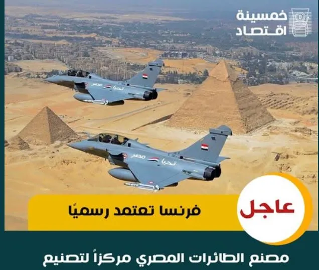 Σε ένα ποιοτικό επίτευγμα για την αιγυπτιακή αμυντική βιομηχανία, η γαλλική εταιρεία Dassault ανακοίνωσε την έγκριση του εργοστασίου αεροσκαφών του Αραβικού Οργανισμού Βιομηχανοποίησης ως κέντρου για την κατασκευή ορισμένων από τα αεροδιαστημικά της εξαρτήματα στην Αίγυπτο.