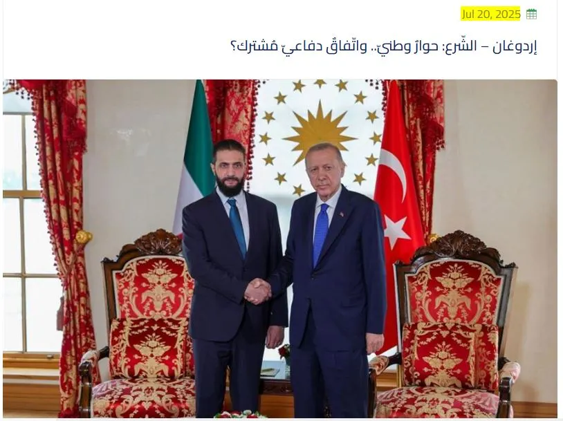 «Ερντογάν – Αλ Σαράα: Ένας εθνικός διάλογος και μια κοινή αμυντική συμφωνία;», γράφει το αραβικό δημοσίευμα