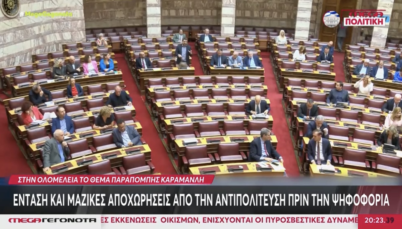 Σε κλίμα έντασης και με αποχρήσεις των κομμάτων, η Ολομέλεια της Βουλής ολοκλήρωσε τη συζήτηση επί του πορίσματος της Προκαταρκτικής Επιτροπής που αφορά τον πρώην υπουργό Υποδομών και Μεταφορών Κώστα Αχ. Καραμανλή για τις ευθύνες σχετικά με την τραγωδία στα Τέμπη και την υπολειτουργία του ΟΣΕ.
