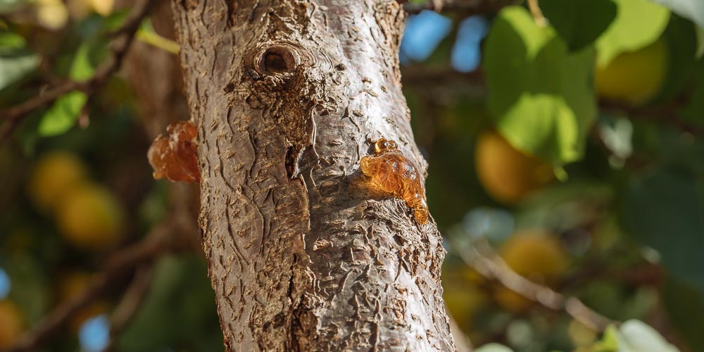 Ένα από τα πιο χαρακτηριστικά συμπτώματα της προσβολής από φυτόφθορα είναι η εμφάνιση μίας κολλώδους ουσίας που μοιάζει με ρετσίνι πάνω στους κορμούς των δέντρων.