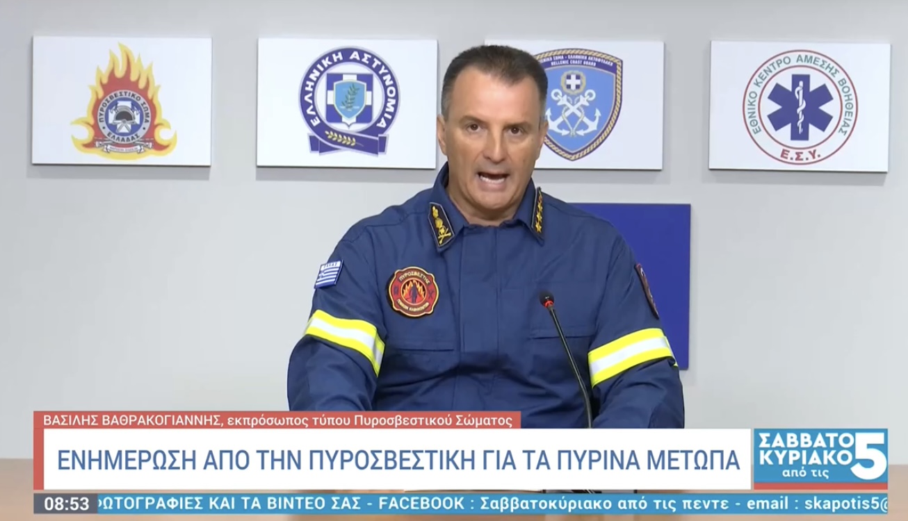 Το πρωί της Κυριακής (27/7) έγινε η πρώτη επίσημη ενημέρωση για την κατάσταση των πυρκαγιών που μαίνονται ανά την επικράτεια. Σύμφωνα με τον εκπρόσωπο Τύπου του Πυροσβεστικού Σώματος, Βασίλη Βαθρακογιάννη τέσσερα μεγάλα μέτωπα βρίσκονται ακόμη σε εξέλιξη.