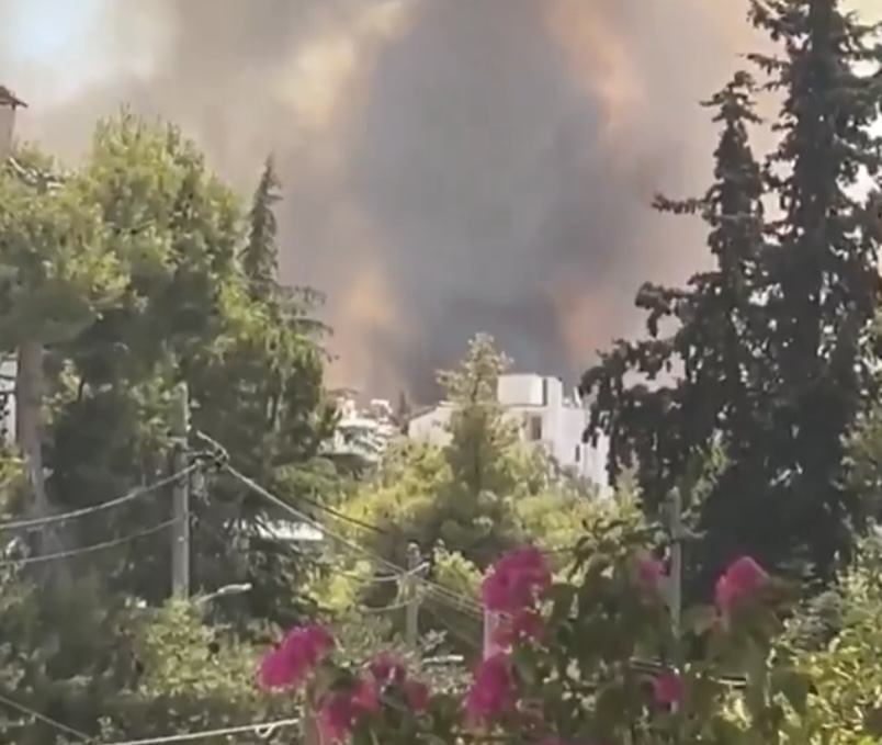Οι καπνοί ήταν ορατοί σε όλο, σχεδόν, το λεκανοπέδιο, με την Πολιτική Προστασία να στέλνει μέσω του 112 προειδοποιητικό μήνυμα προς τους κατοίκους, καλώντας τους να κλείσουν πόρτες και παράθυρα λόγω των καπνών.