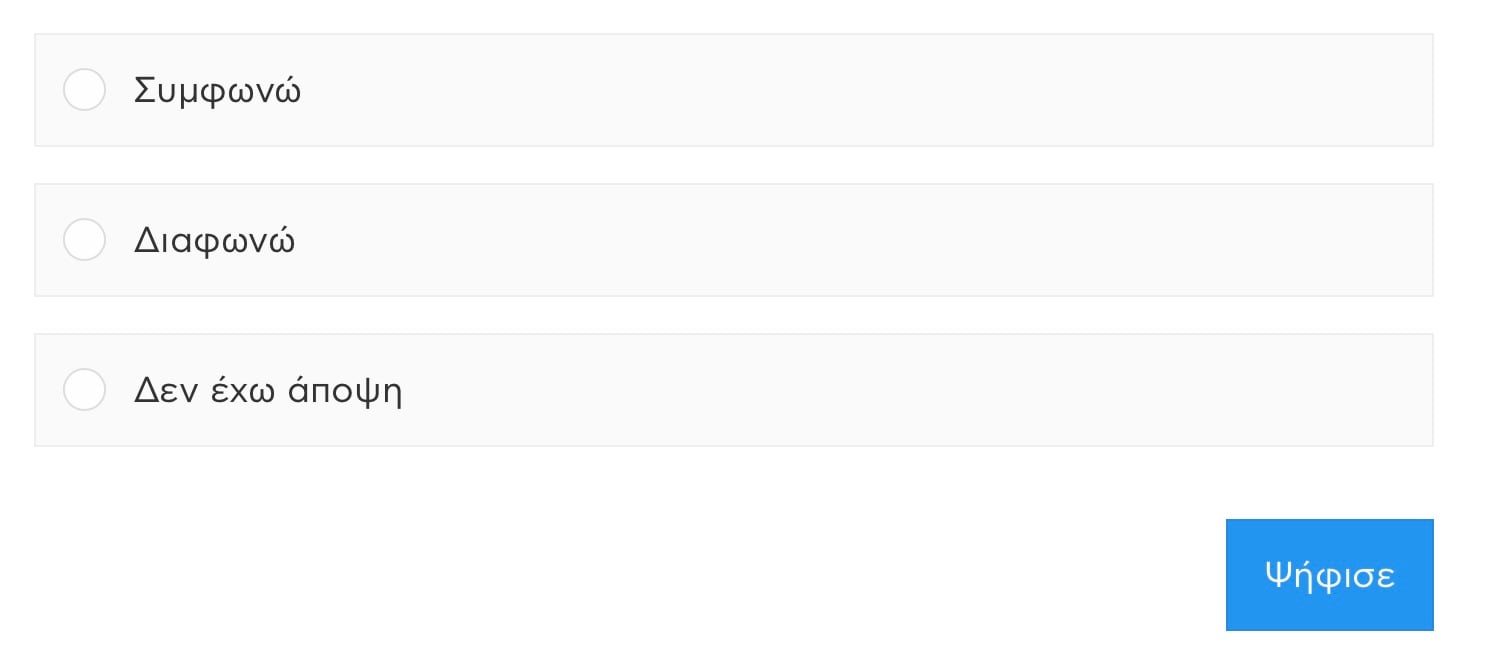 Σημείωση: Μπορείτε να ψηφίσετε μόνο μία φορά. Το σύστημα για λόγους ασφάλειας σας επιτρέπει μόνο μία ψήφο!