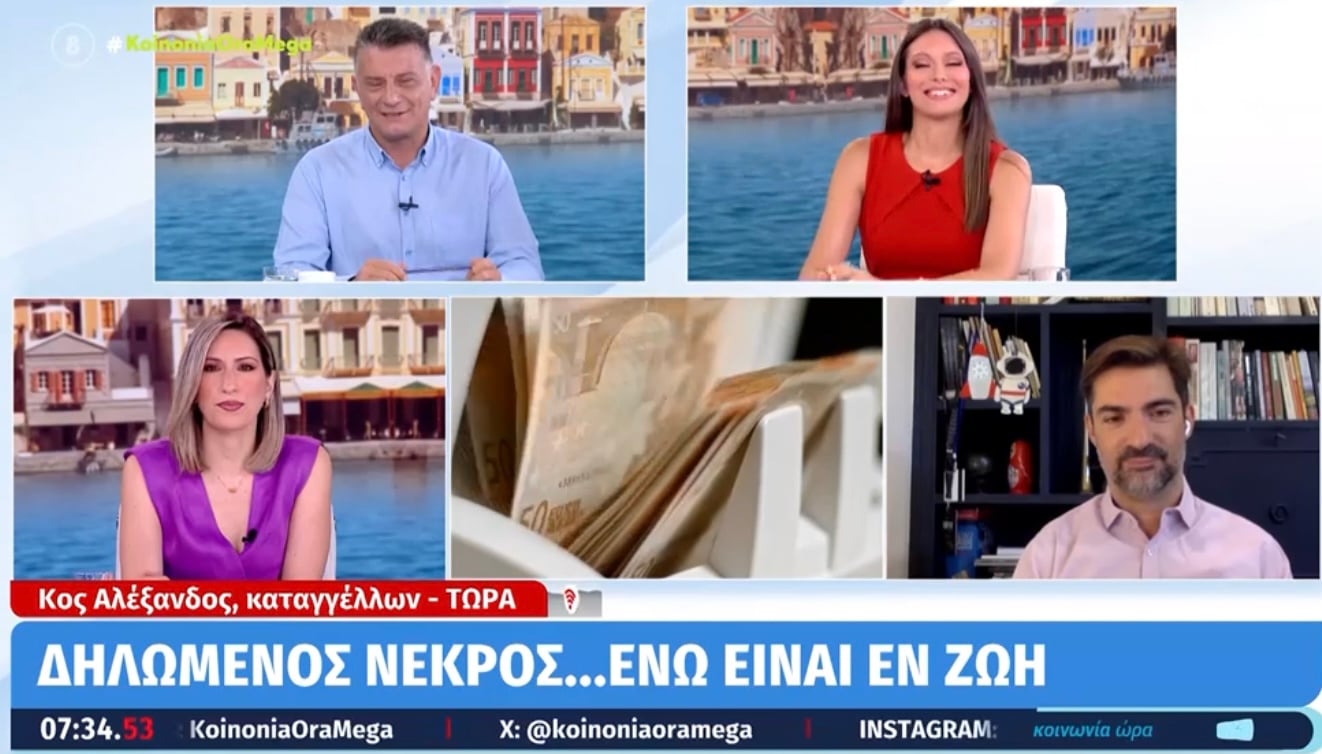 Ο συνταξιούχος, ο κ. Αλέξανδρος μίλησε το πρωί στον τηλεοπτικό σταθμό Mega για όσα αντιμετωπίζει. Πιο συγκεκριμένα, ο ΕΦΚΑ έχει θεωρήσει τον ηλικιωμένο νεκρό και όπως γίνεται σε αυτές τις περιπτώσεις του έκοψε την σύνταξη χωρίς να έχει μπει στον κόπο να διασταυρώσει αν ο άντρας όντως έχει φύγει από την ζωή.