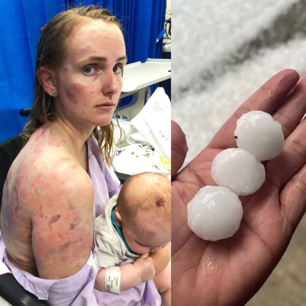 Η Fiona Simpson, μια 23χρονη Αυστραλή μητέρα κατέληξε με σοβαρούς μώλωπες καθώς προστάτευσε το 4 μηνών μωρό της από χαλάζι μεγέθους μπάλας του γκολφ κατά τη διάρκεια μιας καταιγίδας supercell του 2018 στο Κουίνσλαντ.