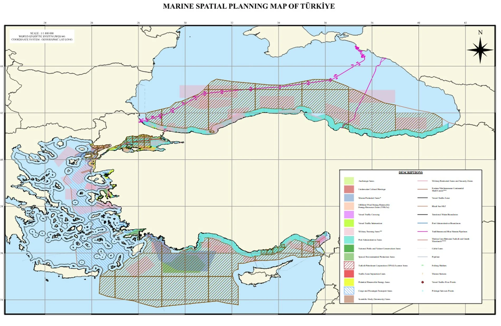 «Οι νέες Θαλάσσιες Προστατευόμενες Περιοχές (ΘΠΠ) της Τουρκίας προστέθηκαν στον Χάρτη Θαλάσσιου Χωροταξικού Σχεδιασμού (DMP) της Τουρκίας και ανακοινώθηκαν στο κοινό», αναφέρει σε σχετική ανάρτηση το DEHUKAM.