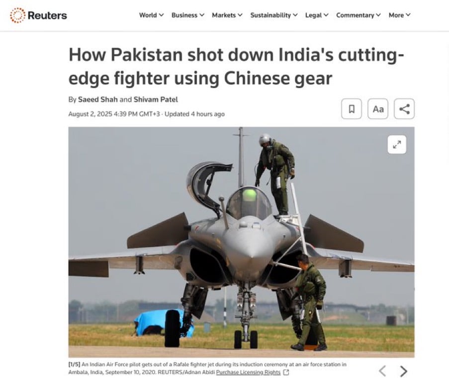 Το Reuters επιβεβαιώνει την κατάρριψη του Rafale και εκφράζει ανησυχία για τα προηγμένα Κινέζικα συστήματα τα οποία αγνοούν οι δυτικές μυστικές υπηρεσίες