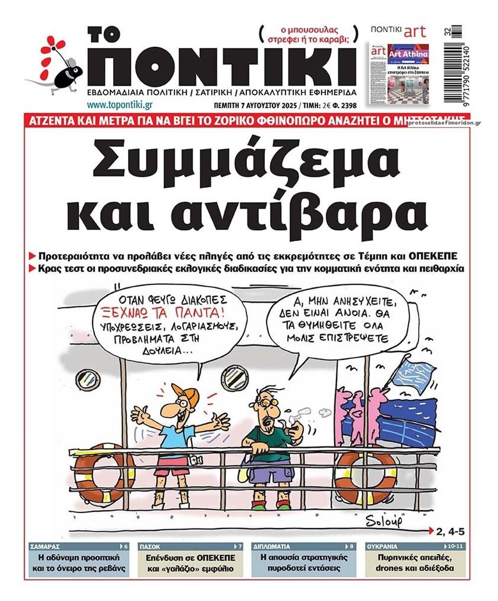 Δείτε εδώ τα πρωτοσέλιδα των εφημερίδων σήμερα Πεμπτη 7 Αυγούστου  2025. Συνεχίστε την ανάγνωση.