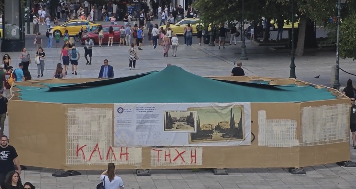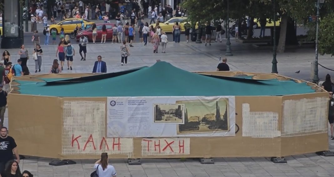 Εντύπωση έχει προκαλέσει σε περαστικούς και κατοίκους στο κέντρο της Αθήνας ο λόγος που το σιντριβάνι στο Σύνταγμα είναι σκεπασμένο.