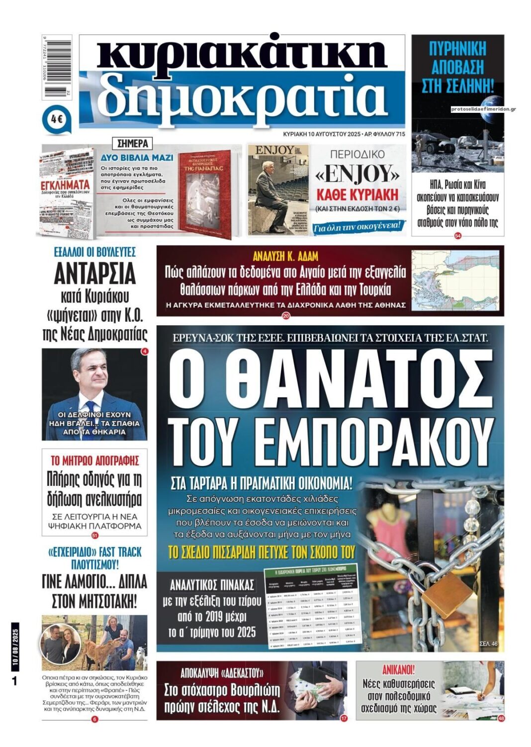 Δείτε εδώ τα πρωτοσέλιδα των εφημερίδων σήμερα Κυριακή 10 Αυγούστου  2025. Συνεχίστε την ανάγνωση.