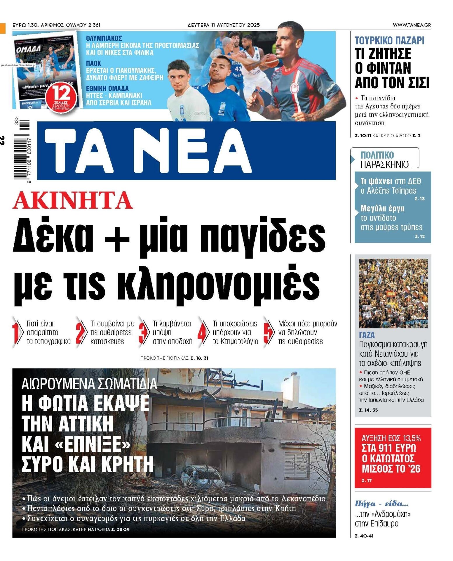 Δείτε εδώ τα πρωτοσέλιδα των εφημερίδων σήμερα Δευτέρα 11 Αυγούστου 2025. Συνεχίστε την ανάγνωση.