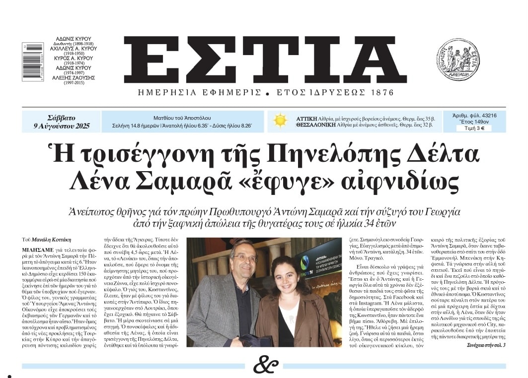 Ανείπωτος θρηνος για τον πρώην Πρωθυπουργό Αντώνη Σαμαρά καί τήν σύζυγό του Γεωργία από τήν ξαφνική απώλεια της θυγατέρας τους σέ ηλικία 34 ετων