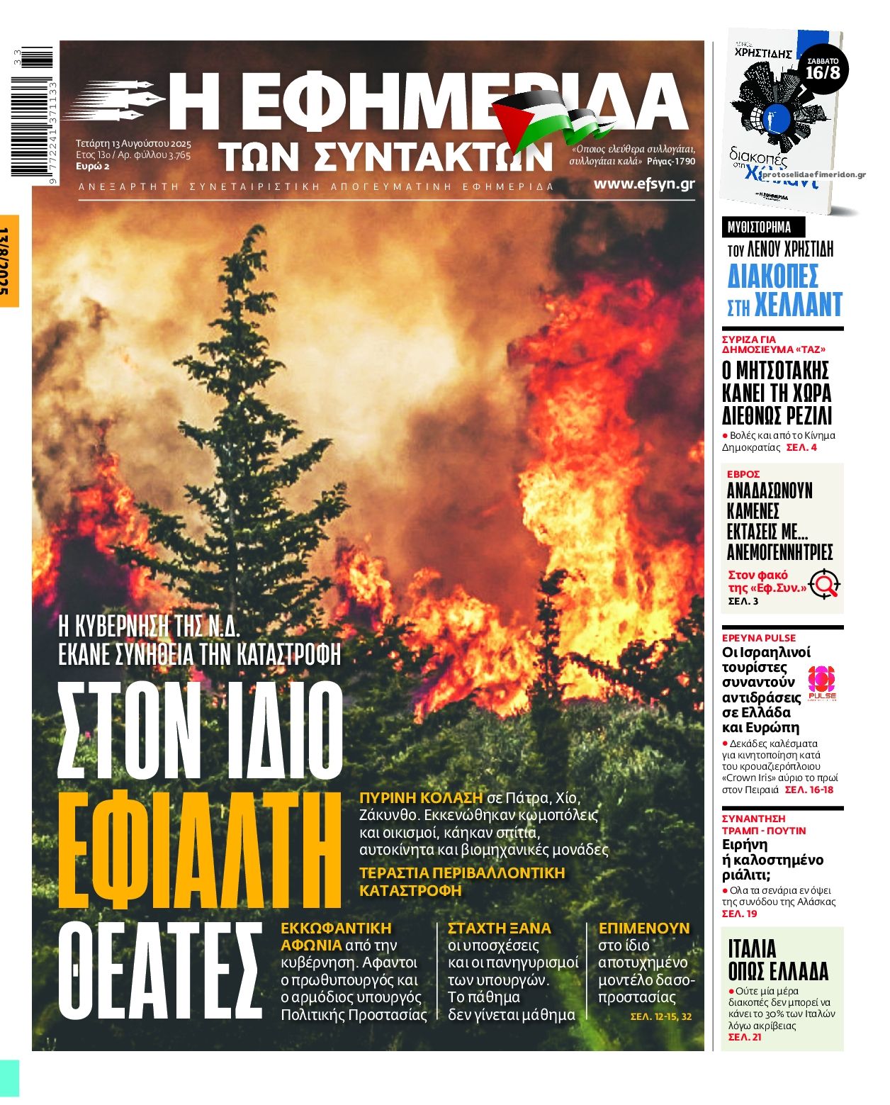 Δείτε εδώ τα πρωτοσέλιδα των εφημερίδων σήμερα Τέταρτη 13 Αυγούστου 2025. Συνεχίστε την ανάγνωση.