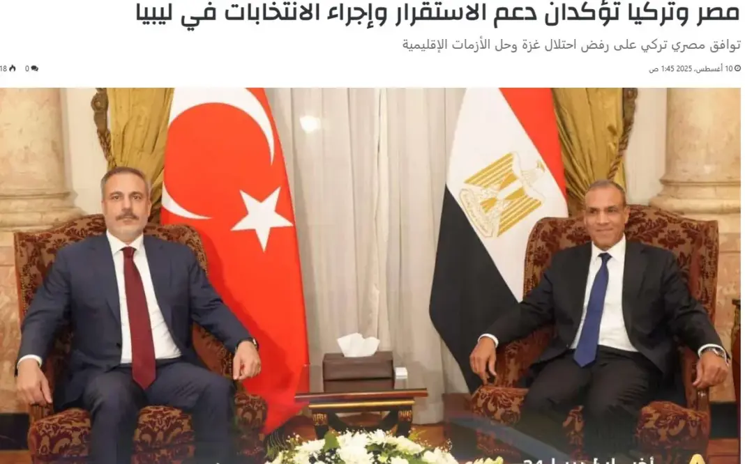 Από την πλευρά του, ο Φιντάν επιβεβαίωσε τη συνεχή συντονισμό με το Κάιρο για την επίτευξη της ενότητας της Λιβύης, επαινώντας τον ρόλο του στη δημιουργία των κατάλληλων πολιτικών και ασφαλιστικών συνθηκών.