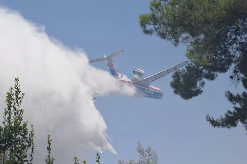 Στη μάχη για την αντιμετώπιση του πύρινου μετώπου σε Σταμάτα, Ροδόπολη, Διόνυσο ρίχθηκε το ρωσικό πυροσβεστικό αεροσκάφος Beriev-200.