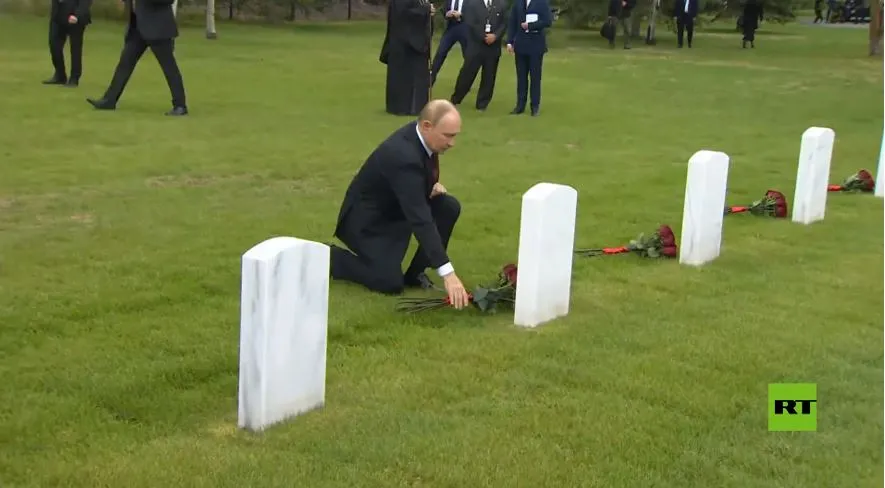 Μετά τις συνομιλίες του με τον πρόεδρο των ΗΠΑ Ντόναλντ Τραμπ, ο Ρώσος πρόεδρος Βλαντιμίρ Πούτιν επισκέφθηκε το Συμμαχικό Μνημείο του Β’ Παγκοσμίου Πολέμου στο Εθνικό Στρατιωτικό Κοιμητήριο Φορτ Ρίτσαρντσον στο Άνκορατζ.
