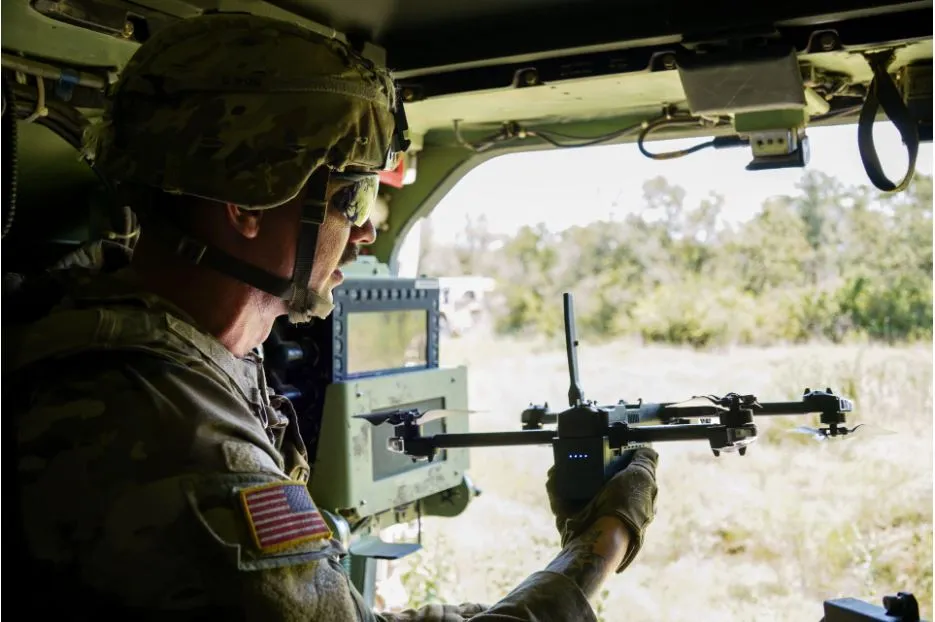 Κατά τη διάρκεια της άσκησης, το μαχητικό όχημα Bradley εκτόξευσε ένα πολυζωνικό drone Skydio X2D για να καθοδηγήσει τις κινήσεις των αρμάτων μάχης Abrams στο πεδίο της μάχης.