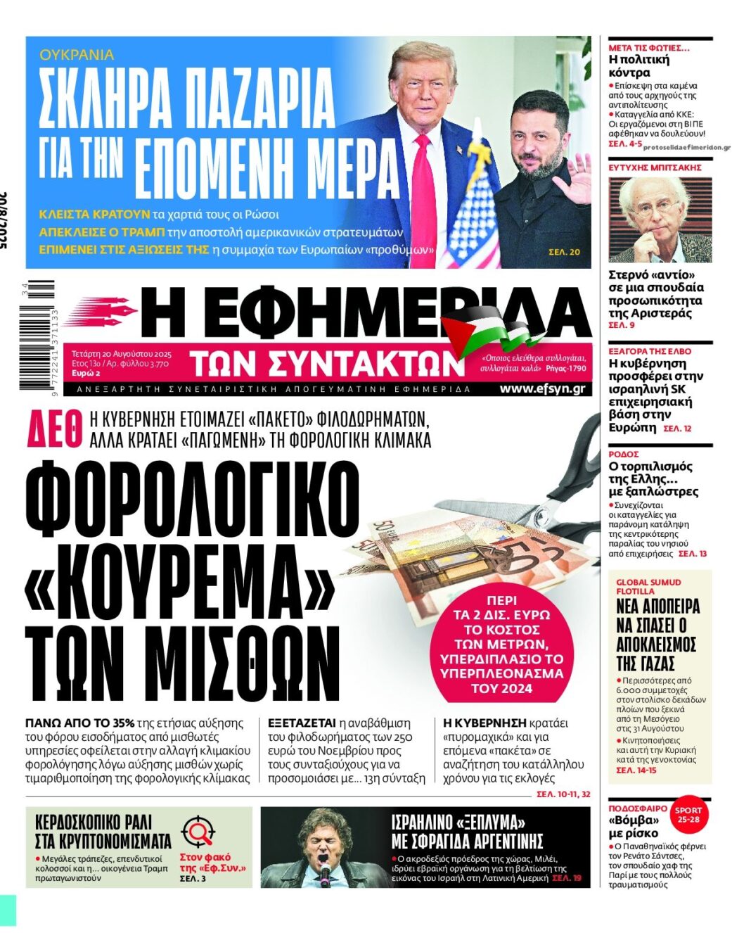 MEDIAΤα πρωτοσέλιδα των εφημερίδων σήμερα Τέταρτη20/08/2025 - 7:00πμΔΙΑΒΑΣΤΕ ΕΠΙΣΗΣ Στην Εστία της Κυριακής: Η συνταγματική αναθεώρηση επισπεύδει τίς εκλογέςΣτην Κυριακάτικη Δημοκρατία: Μοιράζουν χρήμα όσο μας αποκομίζουνΣτο Κυριακάτικο Documento του Κώστα Βαξεβάνη: Πάρτυ εκατομμυρίων στο Μαξίμου και στα υπουργεία με τους συμβούλουςΤην Κυριακή 30/11 με την Εστία της Κυριακής: Το ημερολόγιο του Στρατηγού ΣκόμπιΤην Κυριακή 30/11 με την κυριακάτικη «δημοκρατία»: Σύνταγμα Χωροφυλακής ΑθηνώνΤο πρωτοσέλιδο της εφημερίδας Θεσσαλονίκη που κυκλοφορεί σήμερα ΣάββατοΜε σημαντικές προσφορές κυκλοφορεί η εφημερίδα Θεσσαλονίκη σήμερα ΣάββατοΤα πρωτοσέλιδα των εφημερίδων σήμερα Σάββατο Δείτε εδώ τα πρωτοσέλιδα των εφημερίδων σήμερα Τέταρτη 20 Αυγούστου 2025. Συνεχίστε την ανάγνωση.ΠΡΩΤΟΣΕΛΙΔΑ ΑΦΗΣΤΕ ΜΙΑ ΑΠΑΝΤΗΣΗ Ακύρωση απάντησης Σχόλιο:εισάγετε το σχόλιό σας! Όνομα:*παρακαλώ εισάγετε το όνομά σας εδώ Email:*έχετε εισάγει εσφαλμένη διεύθυνση ηλεκτρονικού ταχυδρομείου!παρακαλώ εισάγετε εδώ την ηλεκτρονική σας διεύθυνση αποθηκεύστε το όνομα, το ηλεκτρονικό ταχυδρομείο και τον ιστότοπό μου σε αυτό το πρόγραμμα περιήγησης για την επόμενη φορά που θα σχολιάσω. ΔΗΜΟΦΙΛΗ Το τελευταίο αντίο στον 19χρονο Ραφαηλ: Το φέρετρο έφτασε στην εκκλησία τυλιγμένο στη γαλανόλευκη στους ώμους στρατιωτικών που δεν μπορούσαν να συγκρατήσουν τα δάκρυά...Ανατροπή στη δίκη της ΚιβωτούΕπιβίωσε από την τρομοκρατική επίθεση της 11ης Σεπτεμβρίου, για να τον σκοτώσουν στο ξύλο τρία καθάρματα…Bροχή σκανδάλων και εισαγγελέας στο Ίδρυμα Νεολαίας και Δια Βίου ΜάθησηςΑνάρτηση βόμβα του Πάνου Καμμενου: Ακριβώς έτσι οι Γερμανοί σχεδιάζουν να μπλέξουν την Ευρώπη στον 3ο παγκόσμιο πόλεμο για να σωθούν…..Εκτακτο διάγγελμα ΖελενσκιΙστορική η «κατρακύλα» Μητσοτακη χωρίς σημεία ανάκαμψηςΑύριο η κηδεία του 19χρονου Ραφαηλ: “Ένα κοπέλι έσβησε πο μια χειροβομβίδα” γράφει συντετριμμένος ο πατέρας του