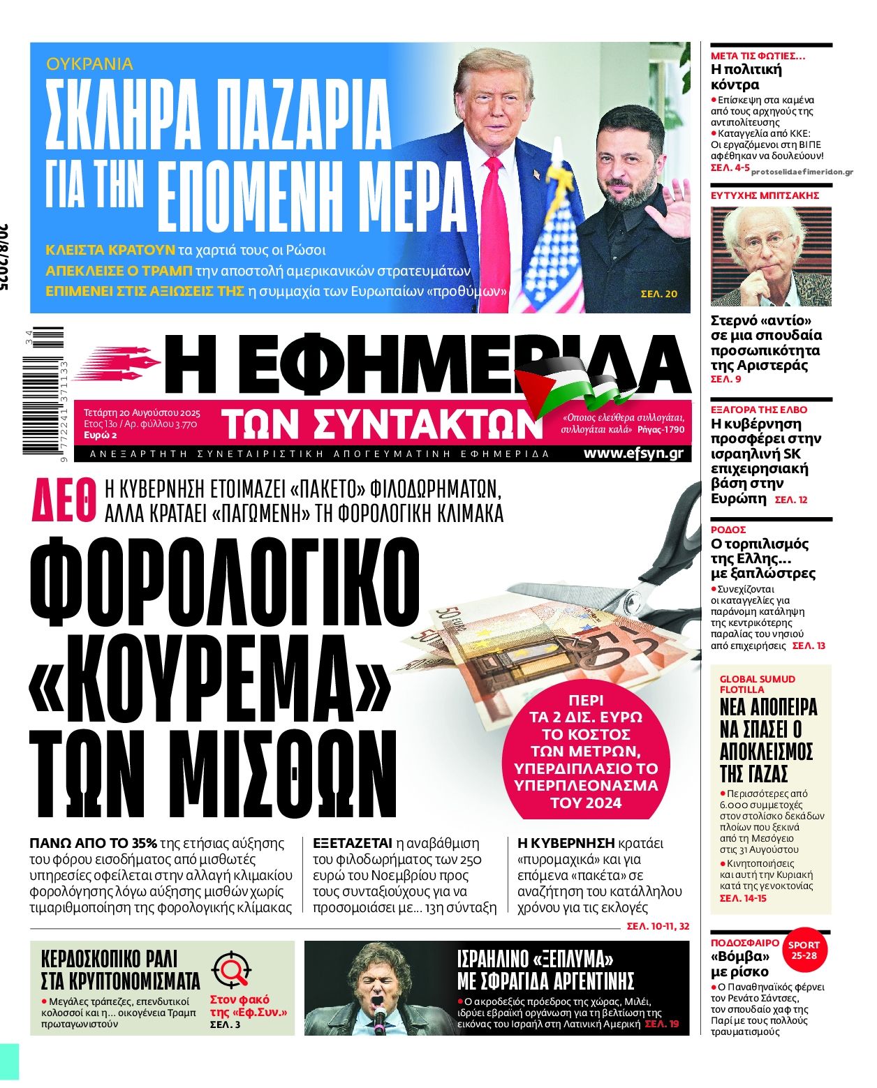 Δείτε εδώ τα πρωτοσέλιδα των εφημερίδων σήμερα Τέταρτη 20 Αυγούστου  2025. Συνεχίστε την ανάγνωση.