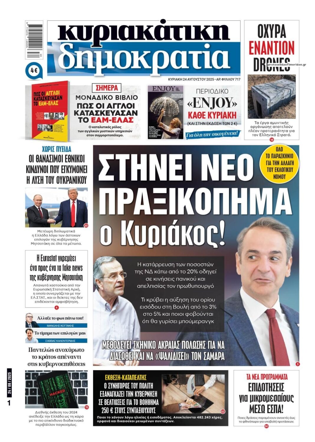 MEDIAΤα πρωτοσέλιδα των εφημερίδων σήμερα Κυριακή24/08/2025 - 7:00πμΔΙΑΒΑΣΤΕ ΕΠΙΣΗΣ Στο Κυριακάτικο Documento του Κώστα Βαξεβάνη: Πάρτυ εκατομμυρίων στο Μαξίμου και στα υπουργεία με τους συμβούλουςΤην Κυριακή 30/11 με την Εστία της Κυριακής: Το ημερολόγιο του Στρατηγού ΣκόμπιΤην Κυριακή 30/11 με την κυριακάτικη «δημοκρατία»: Σύνταγμα Χωροφυλακής ΑθηνώνΤο πρωτοσέλιδο της εφημερίδας Θεσσαλονίκη που κυκλοφορεί σήμερα ΣάββατοΜε σημαντικές προσφορές κυκλοφορεί η εφημερίδα Θεσσαλονίκη σήμερα ΣάββατοΤα πρωτοσέλιδα των εφημερίδων σήμερα ΣάββατοΤo Σάββατο 29/11 με την Εστία: Κλασσικά παραμύθιαΤο Σάββατο 29/11 με την «δημοκρατία»: Ο πόλεμος του πετρελαίου Δείτε εδώ τα πρωτοσέλιδα των εφημερίδων σήμερα Κυριακή 24 Αυγούστου 2025. Συνεχίστε την ανάγνωση.ΠΡΩΤΟΣΕΛΙΔΑ ΑΦΗΣΤΕ ΜΙΑ ΑΠΑΝΤΗΣΗ Ακύρωση απάντησης Σχόλιο:εισάγετε το σχόλιό σας! Όνομα:*παρακαλώ εισάγετε το όνομά σας εδώ Email:*έχετε εισάγει εσφαλμένη διεύθυνση ηλεκτρονικού ταχυδρομείου!παρακαλώ εισάγετε εδώ την ηλεκτρονική σας διεύθυνση αποθηκεύστε το όνομα, το ηλεκτρονικό ταχυδρομείο και τον ιστότοπό μου σε αυτό το πρόγραμμα περιήγησης για την επόμενη φορά που θα σχολιάσω. ΔΗΜΟΦΙΛΗ Το τελευταίο αντίο στον 19χρονο Ραφαηλ: Το φέρετρο έφτασε στην εκκλησία τυλιγμένο στη γαλανόλευκη στους ώμους στρατιωτικών που δεν μπορούσαν να συγκρατήσουν τα δάκρυά...Επιβίωσε από την τρομοκρατική επίθεση της 11ης Σεπτεμβρίου, για να τον σκοτώσουν στο ξύλο τρία καθάρματα…Bροχή σκανδάλων και εισαγγελέας στο Ίδρυμα Νεολαίας και Δια Βίου ΜάθησηςΕκτακτο διάγγελμα ΖελενσκιΙστορική η «κατρακύλα» Μητσοτακη χωρίς σημεία ανάκαμψηςΑύριο η κηδεία του 19χρονου Ραφαηλ: “Ένα κοπέλι έσβησε πο μια χειροβομβίδα” γράφει συντετριμμένος ο πατέρας τουΣυγκλονίζει ο πατέρας του 19χρονου στρατιώτη Ραφαήλ που έχασε τη ζωή του στη ΡόδοΙσλαμοφασιστόμουτρα που εισήλθαν στη χώρα ως «Ασυνόδευτα ανήλικα» βίασαν βάναυσα γυναίκα στη Γαλλία