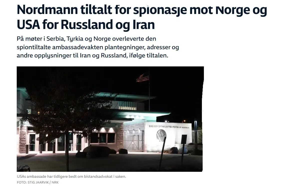 Η δίκη ενός πρώην αξιωματικού ασφαλείας στην πρεσβεία των ΗΠΑ στο Όσλο της Νορβηγίας , με την κατηγορία της κατασκοπείας υπέρ της Ρωσίας και του Ιράν, ξεκίνησε την Τετάρτη 20 Αυγούστου, σύμφωνα με δημοσιεύματα των μέσων ενημέρωσης που επικαλέστηκε το AFP.