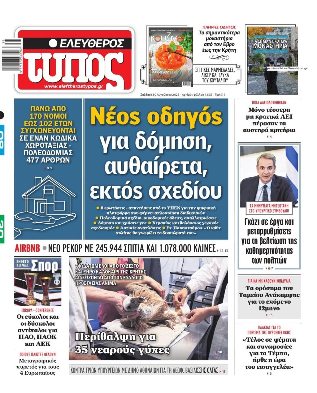 MEDIAΤα πρωτοσέλιδα των εφημερίδων σήμερα Σάββατο30/08/2025 - 7:00πμΔΙΑΒΑΣΤΕ ΕΠΙΣΗΣ Τo Σάββατο 29/11 με την Εστία: Κλασσικά παραμύθιαΤο Σάββατο 29/11 με την «δημοκρατία»: Ο πόλεμος του πετρελαίουΤα πρωτοσέλιδα των εφημερίδων σήμερα ΠαρασκευηΤο Σάββατο 29/11 με την Εspresso: Κλασσικά μυθιστορήματαTην Παρασκευή 28/11 με την «δημοκρατία»: Η Ιστορία της ΔραχμήςΤα πρωτοσέλιδα των εφημερίδων σήμερα ΠέμπτηΤα πρωτοσέλιδα των εφημερίδων σήμερα ΤετάρτηΤα πρωτοσέλιδα των εφημερίδων σήμερα Τρίτη Δείτε εδώ τα πρωτοσέλιδα των εφημερίδων σήμερα Σάββατο 30 Αυγούστου 2025. Συνεχίστε την ανάγνωση.ΠΡΩΤΟΣΕΛΙΔΑ ΑΦΗΣΤΕ ΜΙΑ ΑΠΑΝΤΗΣΗ Ακύρωση απάντησης Σχόλιο:εισάγετε το σχόλιό σας! Όνομα:*παρακαλώ εισάγετε το όνομά σας εδώ Email:*έχετε εισάγει εσφαλμένη διεύθυνση ηλεκτρονικού ταχυδρομείου!παρακαλώ εισάγετε εδώ την ηλεκτρονική σας διεύθυνση αποθηκεύστε το όνομα, το ηλεκτρονικό ταχυδρομείο και τον ιστότοπό μου σε αυτό το πρόγραμμα περιήγησης για την επόμενη φορά που θα σχολιάσω. ΔΗΜΟΦΙΛΗ Το τελευταίο αντίο στον 19χρονο Ραφαηλ: Το φέρετρο έφτασε στην εκκλησία τυλιγμένο στη γαλανόλευκη στους ώμους στρατιωτικών που δεν μπορούσαν να συγκρατήσουν τα δάκρυά...Συγκλονίζει ο πατέρας του 19χρονου στρατιώτη Ραφαήλ που έχασε τη ζωή του στη ΡόδοΑύριο η κηδεία του 19χρονου Ραφαηλ: “Ένα κοπέλι έσβησε πο μια χειροβομβίδα” γράφει συντετριμμένος ο πατέρας τουΙστορική η «κατρακύλα» Μητσοτακη χωρίς σημεία ανάκαμψηςΣάλος με την ανάρτηση του Πάνου Καμμενου για τους “τυχερούς” του ΟΠΕΚΕΠΕ που κερδίζουν συνεχως λαχείαΕπιβίωσε από την τρομοκρατική επίθεση της 11ης Σεπτεμβρίου, για να τον σκοτώσουν στο ξύλο τρία καθάρματα…Η σπαρακτική μαντινάδα του πατέρα του 19χρονου Ραφαηλ που σκοτώθηκε στη ΡόδοΧαμός στη Βουλη με τον Κυριάκο Βελόπουλο: Είστε μαφιόζοι και εγκληματική οργάνωση!