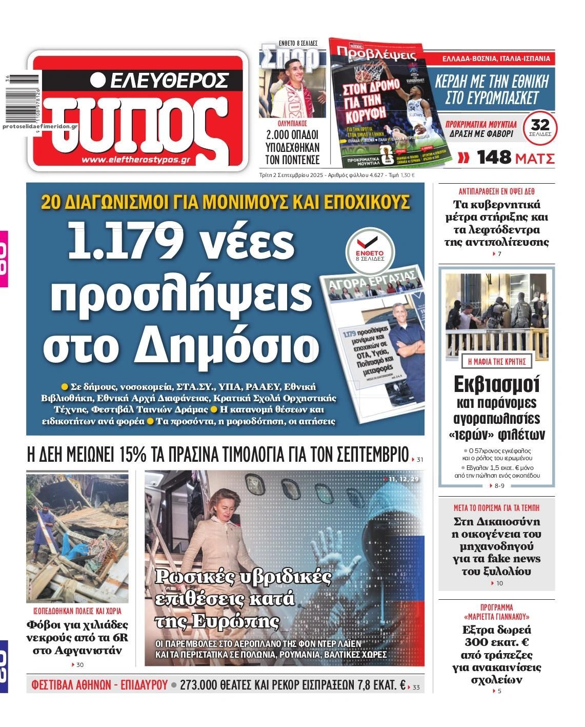 Δείτε εδώ τα πρωτοσέλιδα των εφημερίδων σήμερα Τρίτη 02 Σεπτεμβρίου 2025. Συνεχίστε την ανάγνωση.