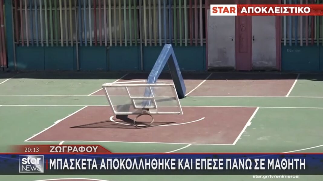 Λίγες μόνο μέρες πριν την νέα σχολική χρονιά: Μπασκέτα στο προαύλιο σχολείου στου Ζωγράφου ξεκόλλησε και έπεσε πάνω σε 16χρονο