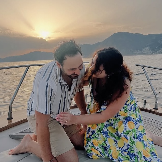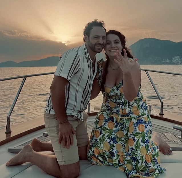 Η πρόταση έγινε πάνω σε σκάφος, με φόντο τα γαλαζοπράσινα νερά της Ιταλικής ακτής, όπως έδειξαν τα σχετικά στιγμιότυπα.