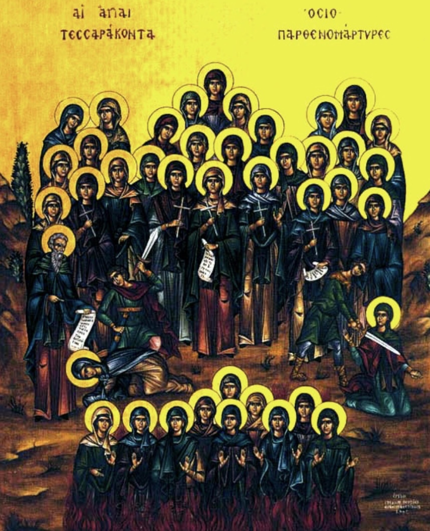 Αγίων Σαράντα Παρθένων και ασκητριών, Αγίου Ιησού του Ναυή, Οσίου Μελετίου του νέου, Οσίου Συμεών του Στυλίτου