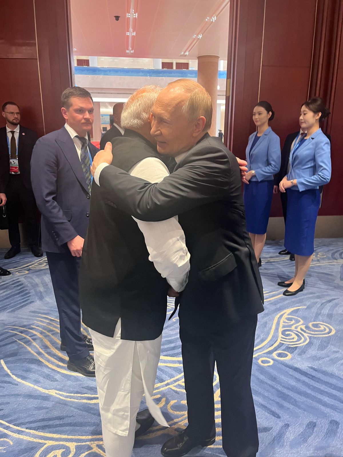 Μετά τις εργασίες στον χώρο της Συνόδου Κορυφής του Οργανισμού Συνεργασίας του Οργανισμού Συνεργασίας (ΟΑΣ), ο Πρόεδρος Πούτιν και εγώ ταξιδέψαμε μαζί στον χώρο της διμερούς μας συνάντησης. Οι συζητήσεις μαζί του είναι πάντα εποικοδομητικές.
