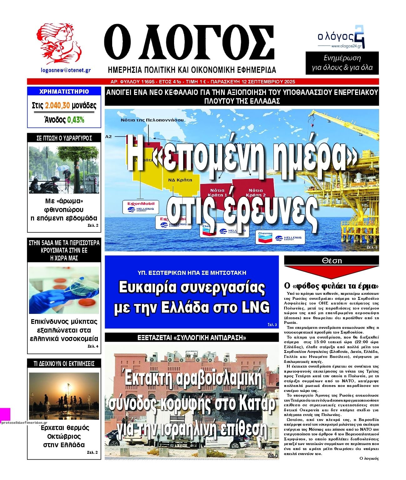 Δείτε εδώ τα πρωτοσέλιδα των εφημερίδων σήμερα Παρασκευη 12 Σεπτεμβρίου 2025. Συνεχίστε την ανάγνωση.