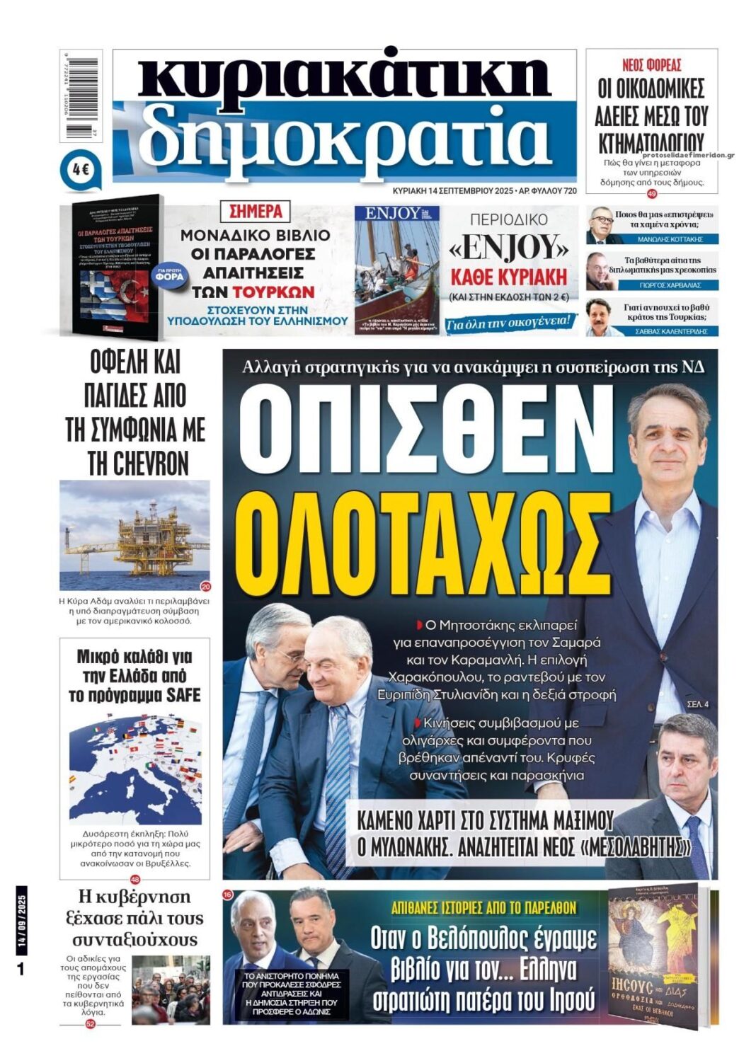 Δείτε εδώ τα πρωτοσέλιδα των εφημερίδων σήμερα Κυριακή 14 Σεπτεμβρίου 2025. Συνεχίστε την ανάγνωση.