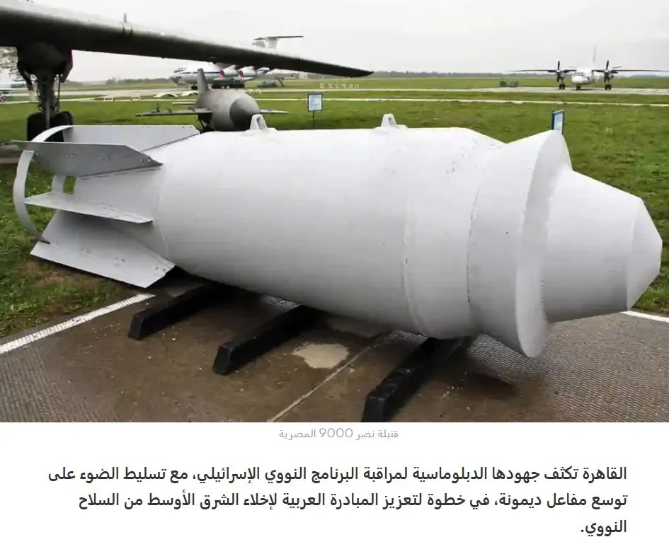 ‘Το Κάιρο εντείνει τις διπλωματικές του προσπάθειες για την παρακολούθηση του πυρηνικού προγράμματος του Ισραήλ, με έμφαση στην επέκταση του αντιδραστήρα Ντιμόνα, σε μια προσπάθεια να ενισχύσει την αραβική πρωτοβουλία για την απελευθέρωση της Μέσης Ανατολής από πυρηνικά όπλα’, γράφει ιστότοπος για την Αραβική Άμυνα.