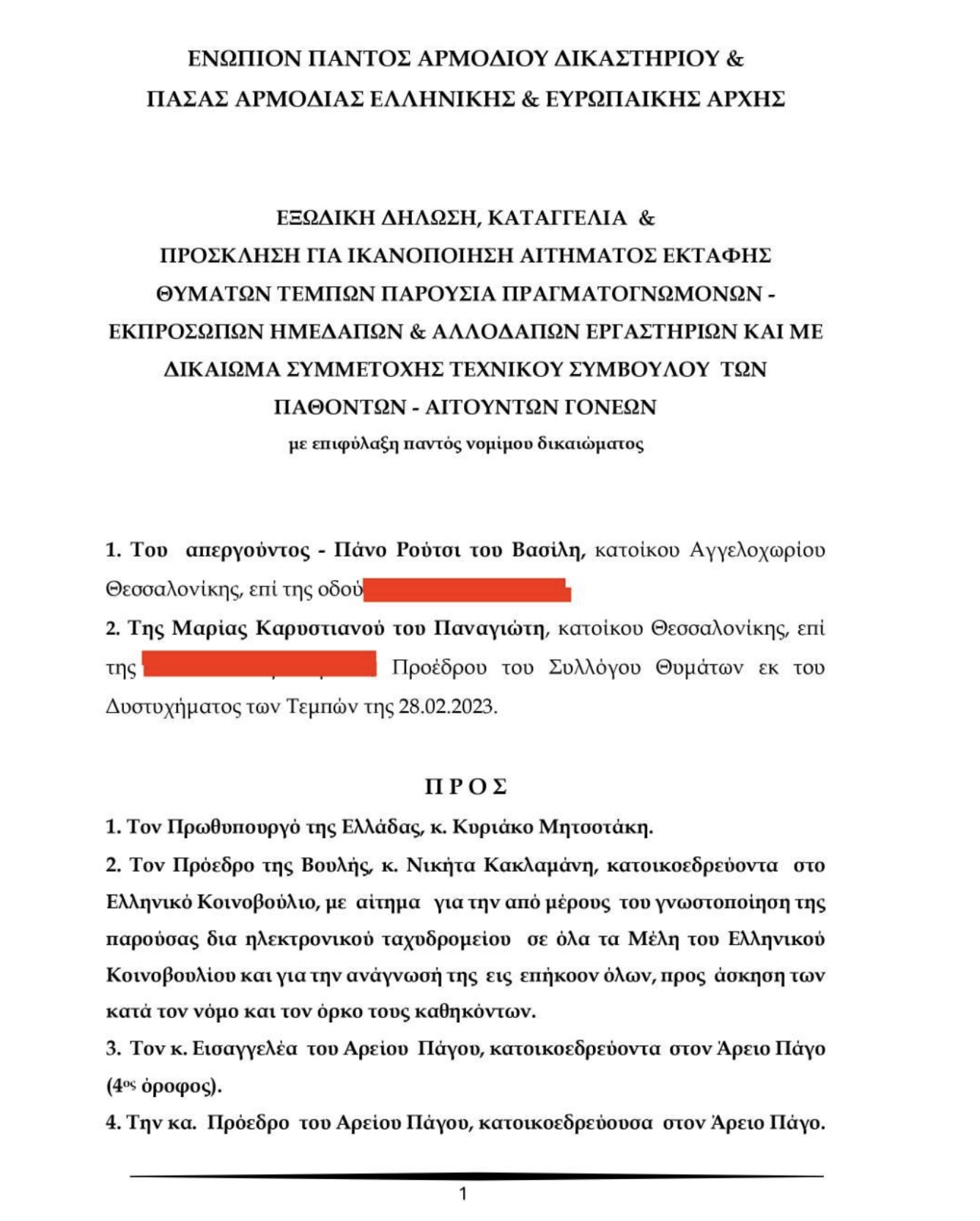 Σήμερα, εξώδικη διαμαρτυρία εστάλη σε: