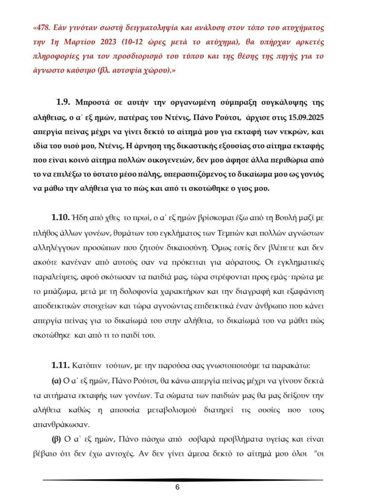 Στην δικτατορία που καταντήσαμε να ζούμε, ένας γονιός που έθαψε το παιδί του.. το σκοτωμένο από κρατικές εγκληματικές ευθύνες και διαφθορά, κινδυνεύει να πεθάνει, μπροστά στη Βουλή!
