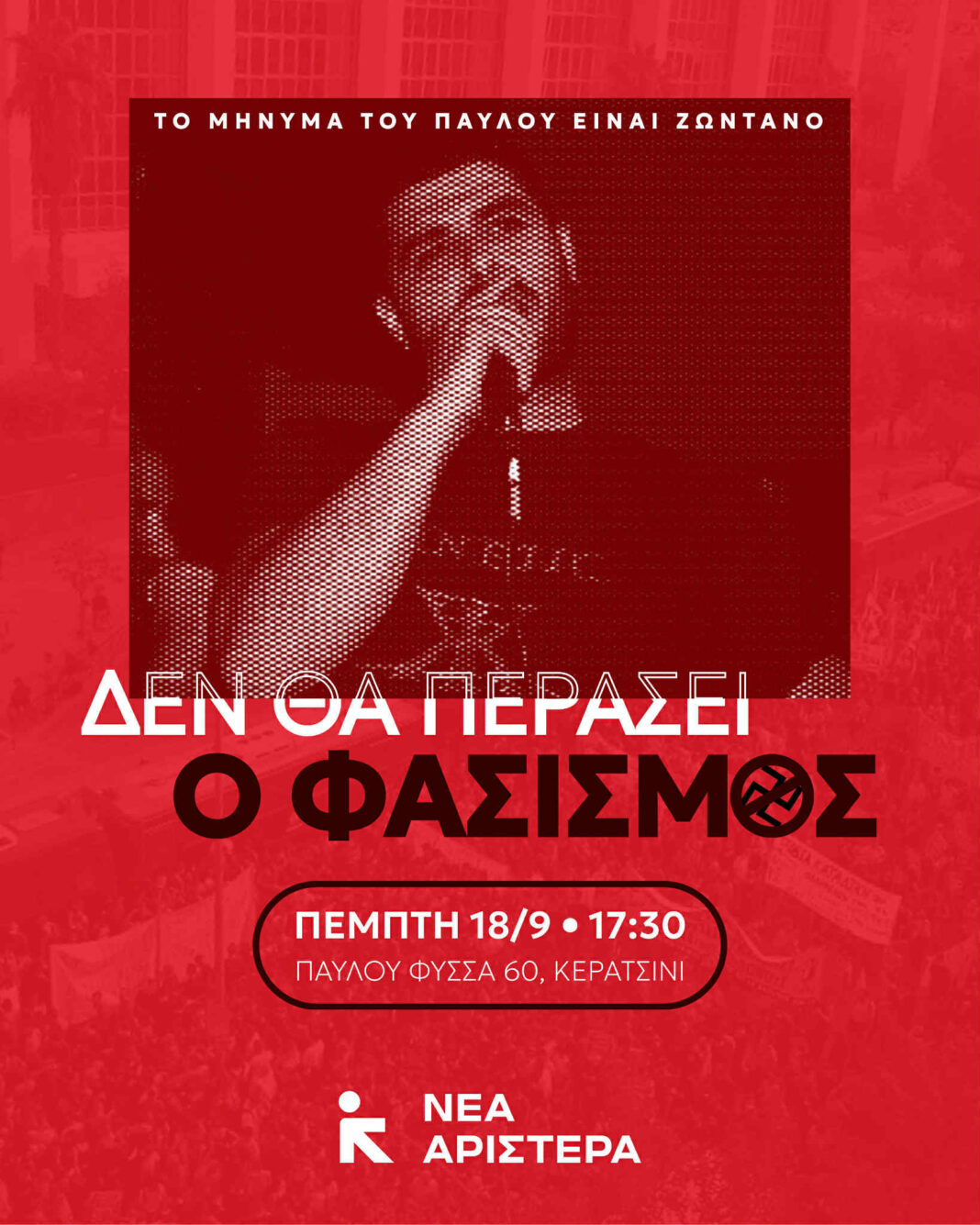 Νέα Αριστερά: Δώδεκα χρόνια από τη στυγερή δολοφονία του Παύλου Φύσσα
