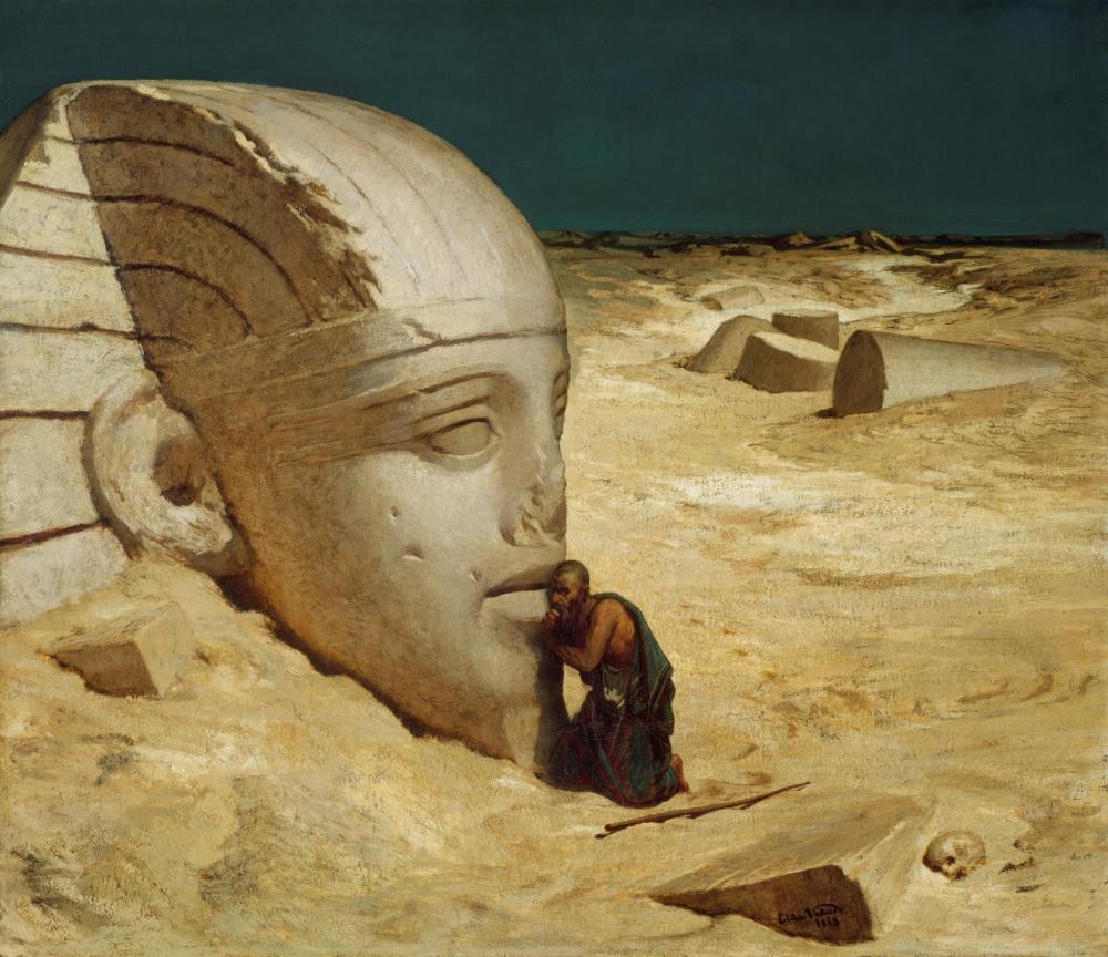 Η Αίγυπτος υπήρξε πάντα τόπος μυστηρίων, γεμάτος ιστορίες θαμμένες στην άμμο και σύμβολα που μένουν ακατανόητα. Ένα έργο του 1863, ο “Ερωτών τη Σφίγγα” του Αμερικανού ζωγράφου Elihu Vedder, συγκεντρώνει όλα αυτά τα αινίγματα σε μία σκηνή.